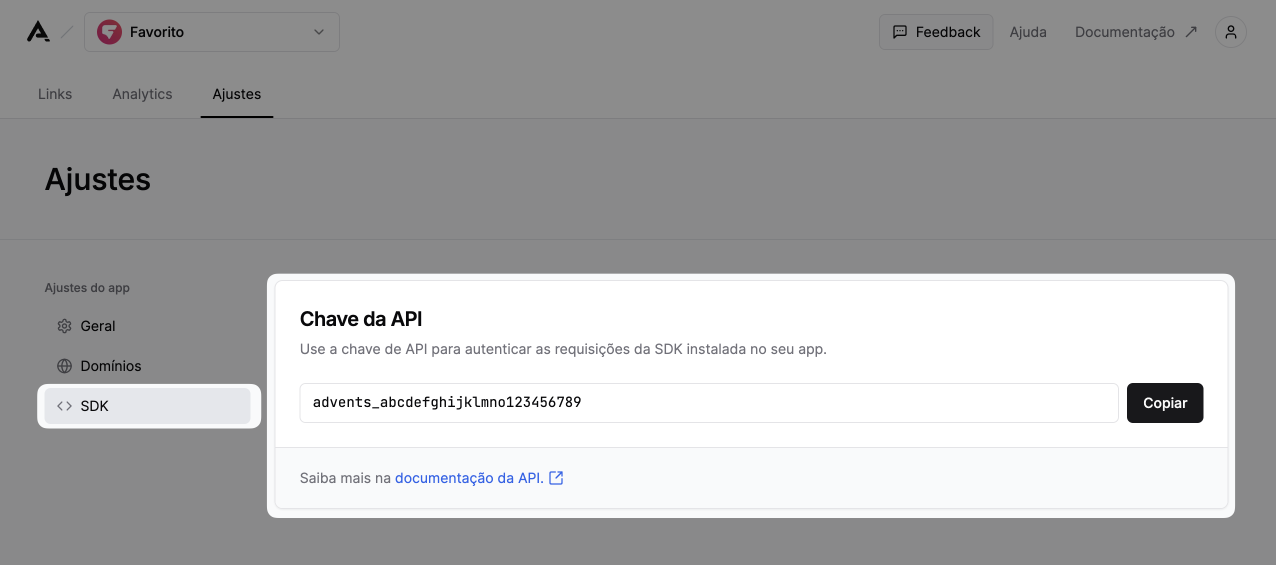 Dentro das configurações do seu aplicativo, acesse a seçãoSDK.